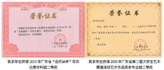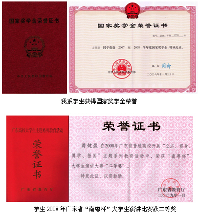 据不完全统计,我系学生在2006-2010年,共获得院内集体奖项5次,院外个人奖项57人次(其中省级17人次,国家级37人次)。具体如下: