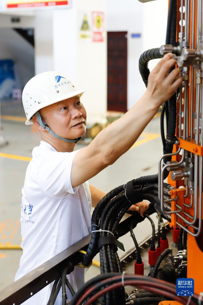 万步炎在湖南科技大学海洋实验室工作(2022年7月25日摄)(新华社发)
