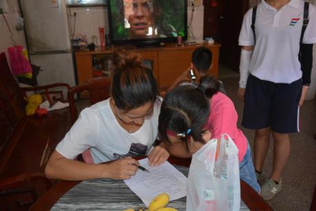 上午时间,大多数家庭只有老人和小孩在家。刚开始时,问卷派发有点困难。很多老人坦言自己文化水平低,而拒绝了我们的采访。但还是有很多热情的老人愿意配合我们,与他们的言谈中,我们感受到他们对孩子们教育的关心与对我们大学生支教的支持。
