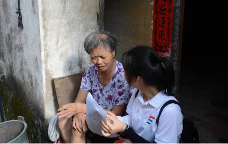 图3 小伙伴耐心地帮助不大识字的奶奶做问卷
