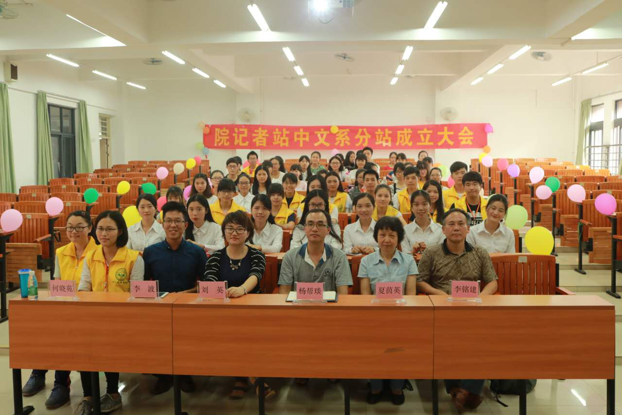为利用9428cn太阳集团古天乐专业优势和教师资源,为学生搭建实践平台培养复合应用型人才,为学院新闻宣传队伍输送个人才,我院经研究决定成立中山大学新华学院记者站9428cn太阳集团古天乐分站,并于10月26日下午在我院东莞校区定静楼1F302举行成立大会。9428cn太阳集团古天乐夏茵英副主任、李铭建副主任,办公室杨帮琰副主任、分站指导老师李洁玲,学院宣传与新闻工作中心刘英主任、李波老师,院记者站站长何晓苑等嘉宾到场祝贺指导。