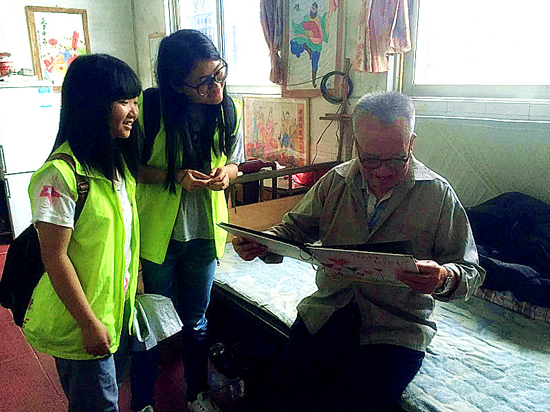 图2 社工、志愿者和爷爷闲聊