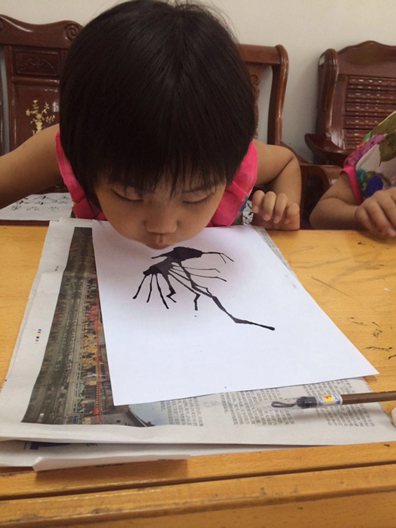 图5 志愿者教孩子“吹梅花”