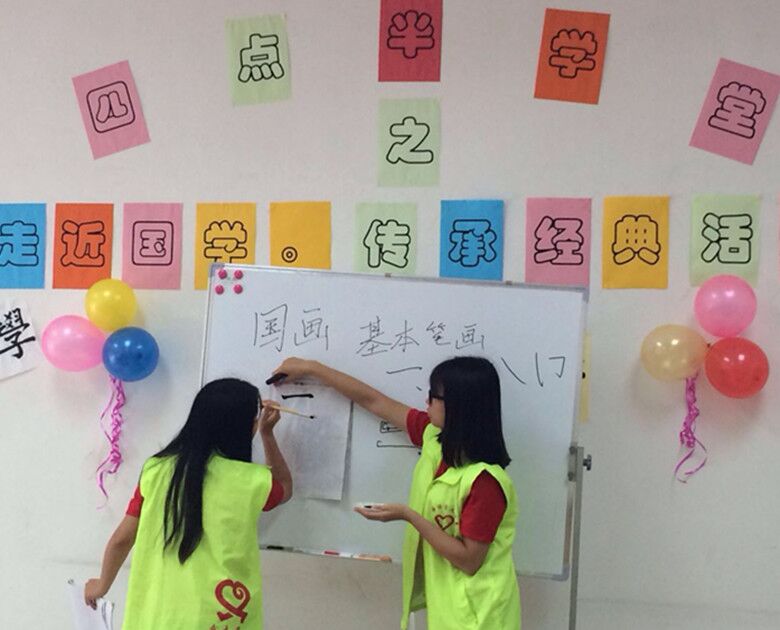 活动伊始,志愿者向小朋友们介绍国学的基本知识。小朋友被博大精深的国学所吸引,纷纷举手发言,活动氛围立马就被点燃!
