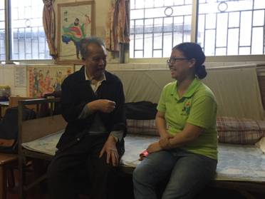 图1 志愿者在认真听着老人讲述过往经历