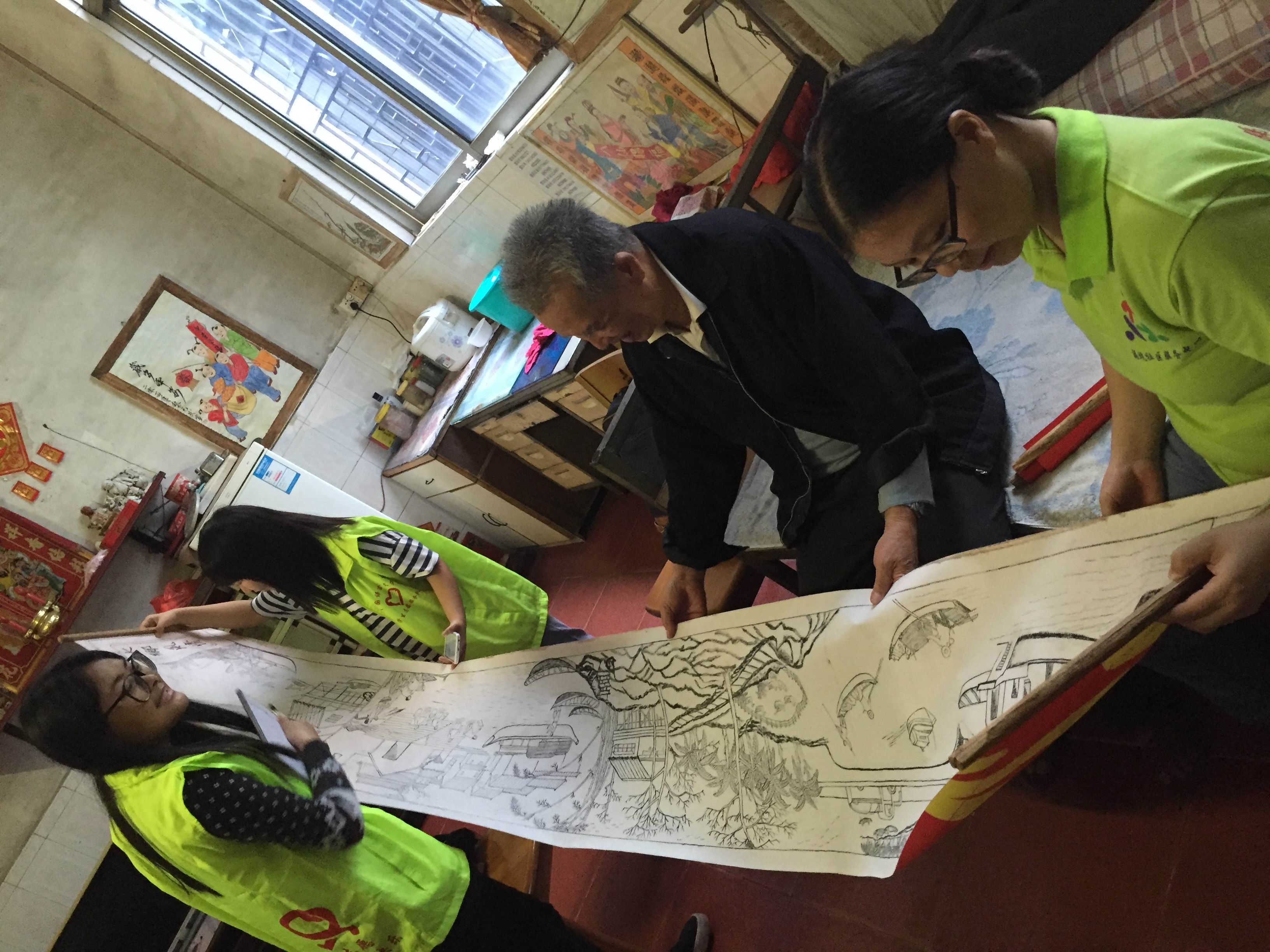 图2 志愿者很认真地欣赏老爷爷的画
