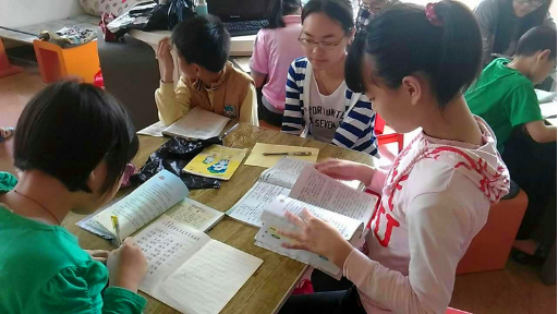 图1 一起安静地学习 图2 埋头思索作业中的难题