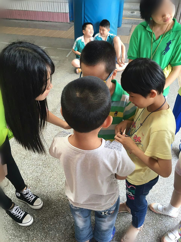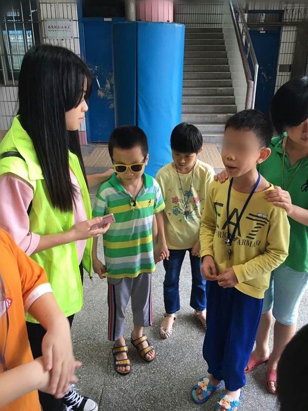到达广州盲人学校,映入眼帘的是孩子们嬉戏的身影,拂过耳畔的是孩子们的欢声笑语。他们早早的就在小操场上玩乐,享受愉快的周六。我们热情地过去跟他们打招呼,邀请他们一起玩游戏。他们并没有因为我们的突然到访感到惊讶,而是热情地走过来跟我们聊天。