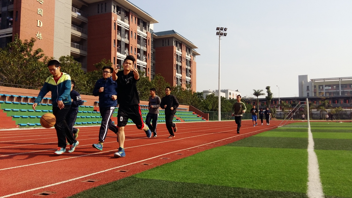 2016年3月24日下午3点半,阳光明媚,参加活动的同学们陆续来到我院东莞校区足球场集合。在开跑前同学们兴奋地拍了大合照后,体育委员肖邦贤同学带领着同学们陆续的踏上跑道,同学们井然有序地跟着队伍慢跑。在慢跑结束后,大家一起坐在草坪上休息。为了增加活动的趣味性,班团委临时决定增加游戏项目—“你来我家干什么”。把同学们分成两个队伍,手挽手的进行了激烈的追逐游戏。
