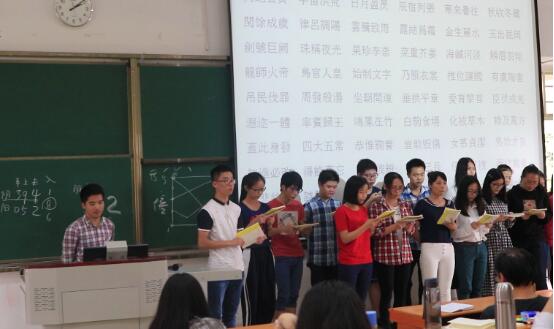 2016年4月6日下午14:30,9428cn太阳集团古天乐李铭建副主任在定静楼2-D203组织开展“古诗文吟诵”的讲座。9428cn太阳集团古天乐吟诵社发起人2013级9428cn太阳集团古天乐学生李文杰作为主讲人,组织吟诵社开展各方言杂烩的古诗文吟诵分享活动,给2015级9428cn太阳集团古天乐学子带来了一场古诗文吟诵文化盛宴!