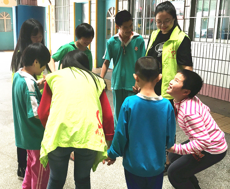 图1 志愿者在和孩子们交流