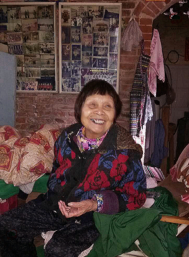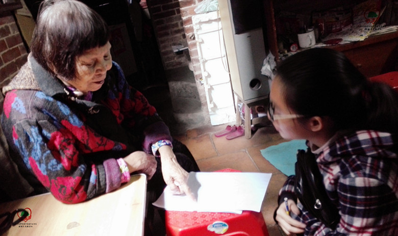图4 老奶奶在拍照前笑着让志愿者“把关”着装
