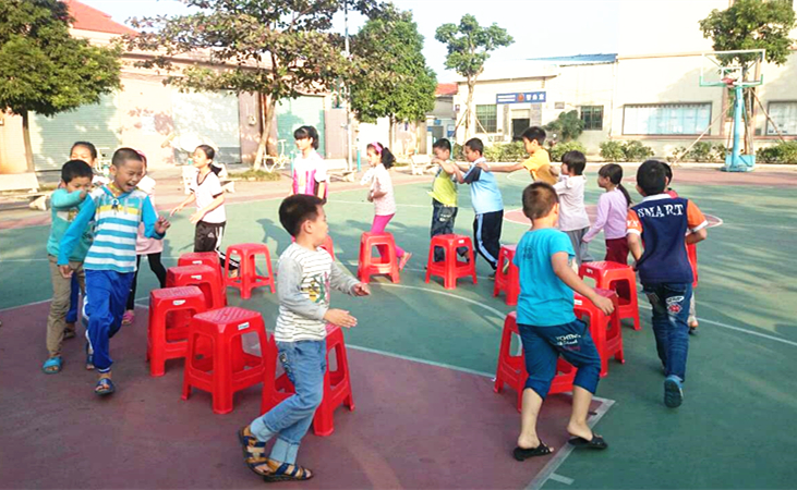 在紧接着的“抢凳仔”活动环节中,孩子们都全力投入,灿烂的笑容一直挂在纯洁的脸上,阳光下,就像一个个纯洁的小天使。