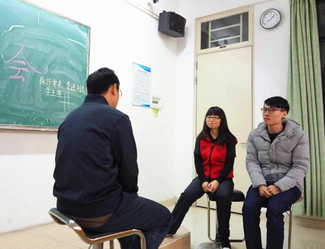2015年12月11日晚七点,华阳村老人探访志愿小组培训课在我院东莞校区定静楼2-B201顺利进行。为了方便对志愿者的培训,社工特地来到学校为志愿者们开启培训。冬天已经来到了大家的身边,夜幕降临,尽管窗外寒风呼啸,也阻挡不了社工与志愿者们温热的爱心。