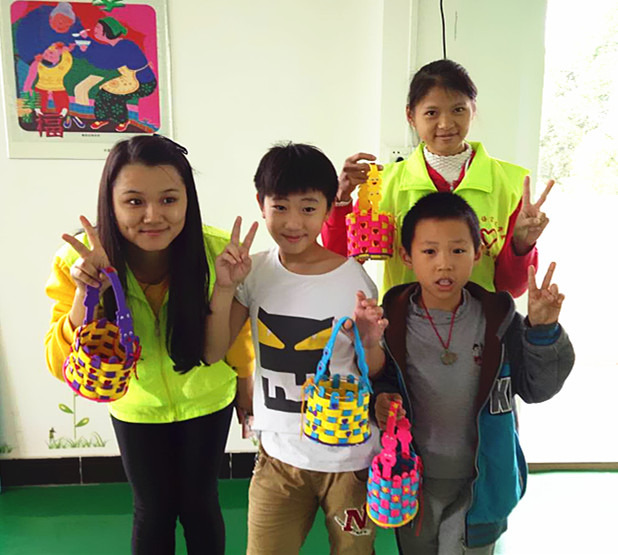 手工组小朋友和志愿者哥哥姐姐一起做着可爱的花篮,用她们的巧手一步一步慢慢编织,最后的成果是不是超级赞呢?这是她们自己动手的成果,在此过程中,她们不但掌握了花篮的制作方法,更收获了团结合作带来的愉悦!