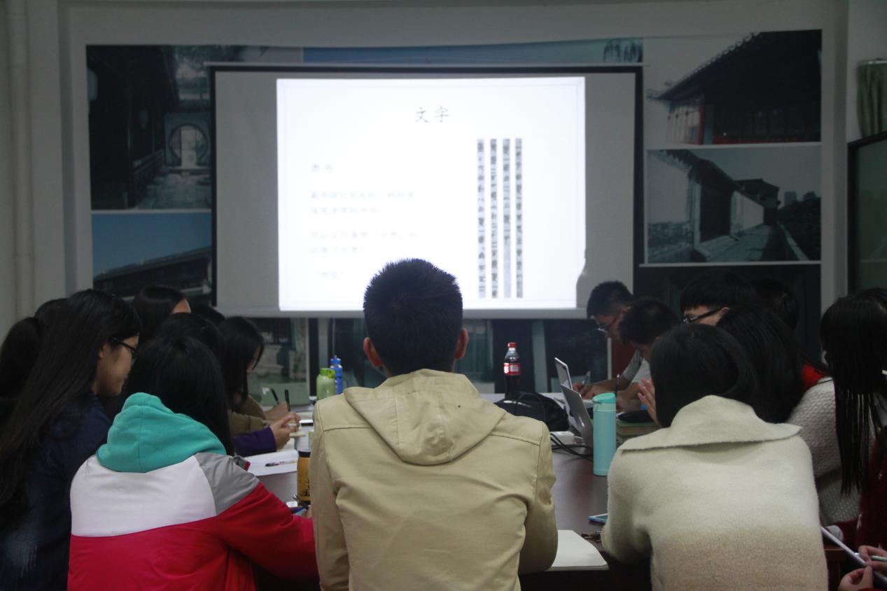 12月13日晚,学院周有光与中国语文现代化研究中心古诗文吟诵组第二期“格致诚正”培训交流于我院周有光与中国语文现代化学术研究办公室进行。此次培训的主讲人为13级中国语言文学系利伟豪同学,主讲内容为“小学常识”,30多位吟诵爱好者参与了此次培训。