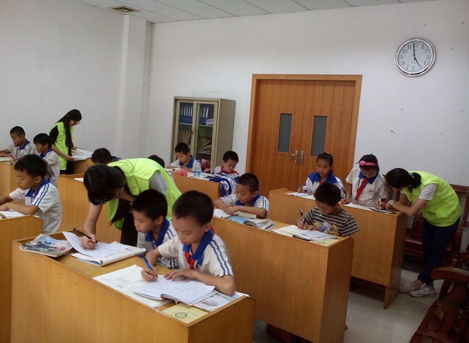 踏进大门,你们已经在认真地做作业。在熟悉的你们当中,有不少陌生的面孔。但是他们面对新来的志愿者姐姐,虽然会感到一丝的羞涩,却不忘热情地我们打招呼。在做作业的过程中,认真地做作业;遇到困难时虚心请教;问题解决后,微笑道谢。辅导过程中,我们发现各年级的小朋友们都存在相同的不足之处,即对书本上的知识不熟悉,上课做的笔记没有内化成自己的东西。当然,这个是可以谅解的,小朋友们毕竟还小,没有养成好的复习习惯,我们在日后的辅导中,也会帮助小朋友们,形成一个良好的学习习惯。