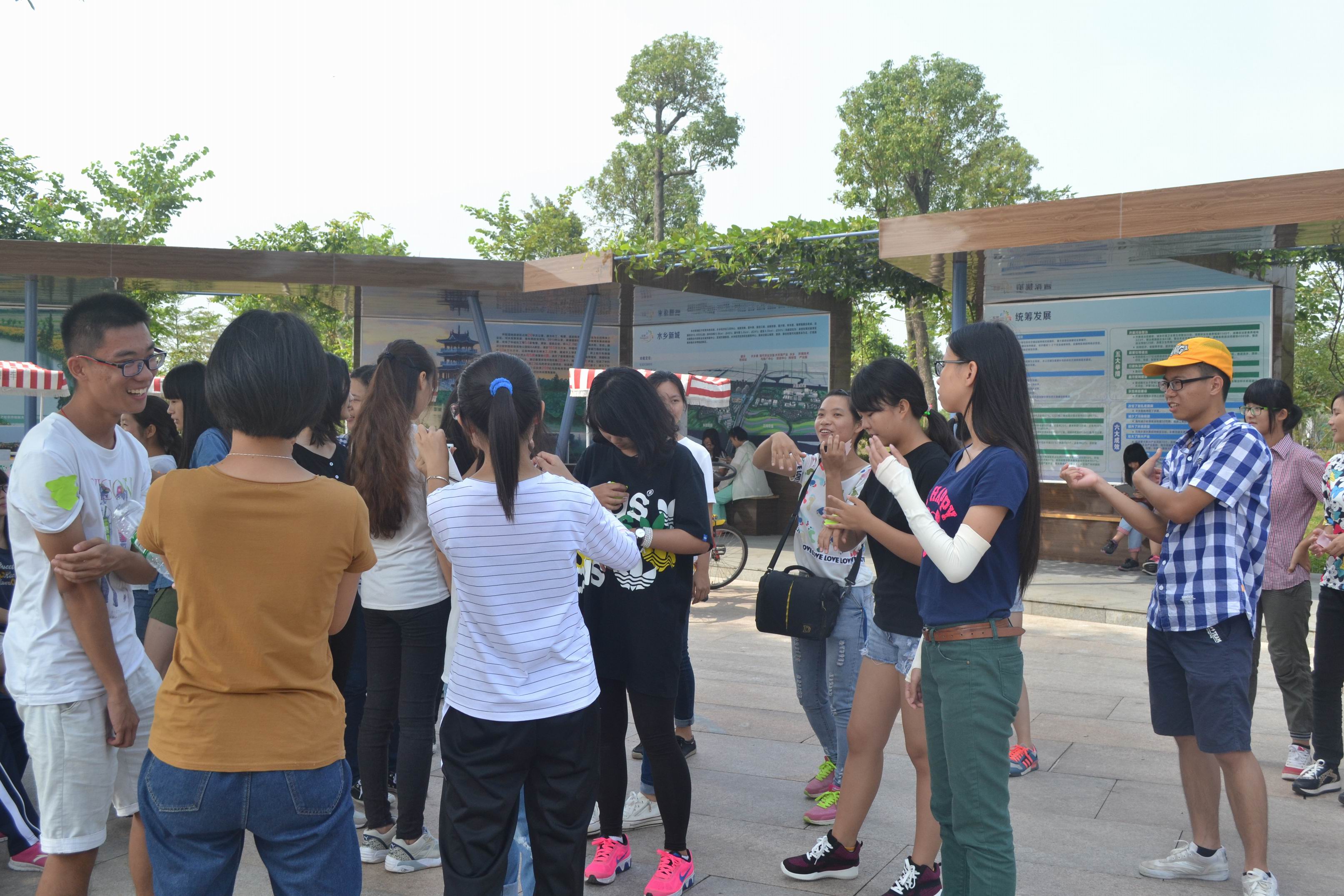 到达目的地,同学们一边踩着自行车,一边欣赏着沿途的怡人风景,这种亲近大自然的“三走”活动形式,不仅使同学们从中深深感受到了与大自然亲近的乐趣,更加有利于培养大学生热爱生活,追求美好事物的品质。期间,班团干们还有序地组织了“团抱”、“撕名牌”、“谁是卧底”等精彩有趣的游戏,将现场气氛推到最高点,同学们都表现出高度的积极与热情参加游戏。最后,本次“三走”活动以连拍的大合照的方式圆满结束。