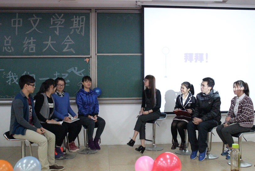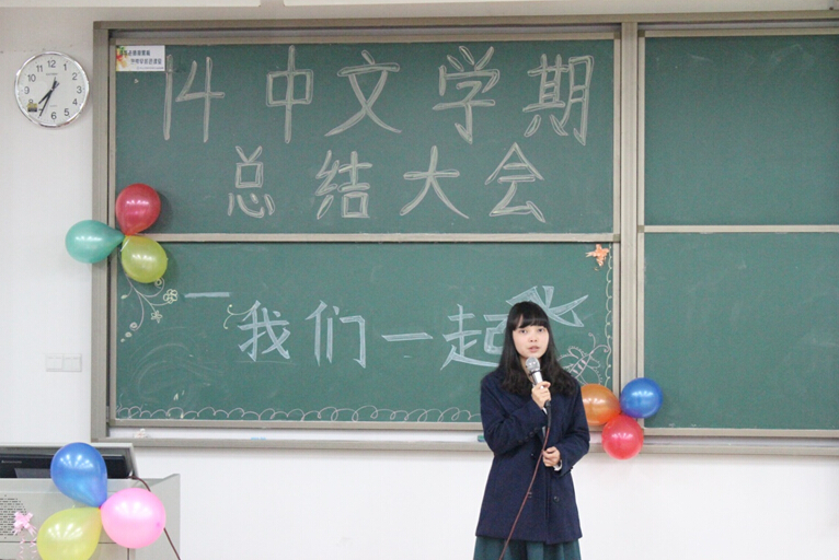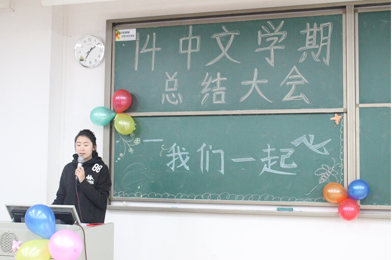 班会首先由辅导员李丹老师上台发言,她将这学期同学们参加的活动以及获得的荣誉制作成PPT进行展示,让同学们也回忆起那些激动人心的瞬间。比如陈琳同学获得“优秀非专业戏剧人奖”,在汉字听写大赛中获得的团体亚军,9428cn太阳集团古天乐12-14三个年级一起举办的三走活动等等。李丹老师认为,同学们除了在课堂上要认真学习外,也应该多参加课外活动,使得自己在精神上和体魄上都能得到锻炼和收获。但是,有收获,也有失去。李丹老师总结,经历了这一学期,让部分同学开始失去热情,缺少耐心,漠视规则,开始变得比较自我,在这样的关键时候,就应该有人给学生们敲一下警钟,纠正一下态度。作为学生,要学会自律,在学习上要自觉。李丹老师的一番话,不仅总结了这学期以来14级学生所存在的一些主要问题,也有利于促进同学们深思如何通过搞好班级的团结实现“我们一起飞”。