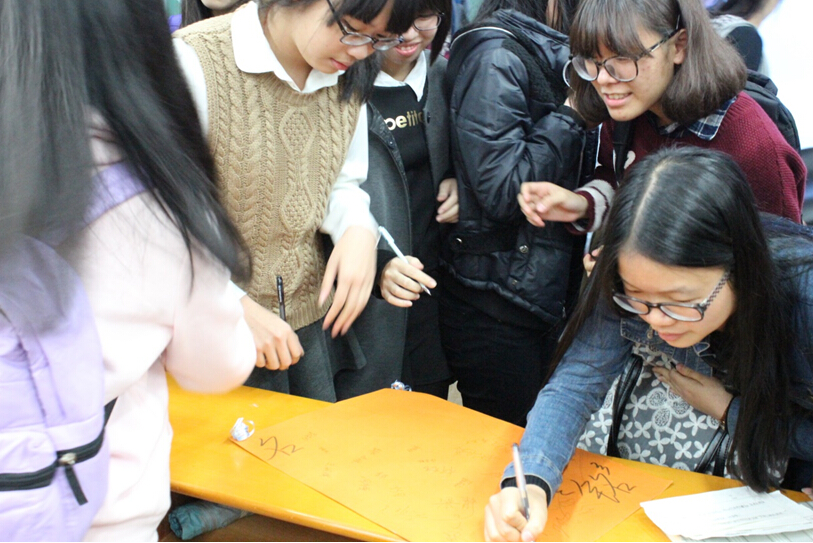 图6 认真签名的同学,都怀着一份美好的祝愿