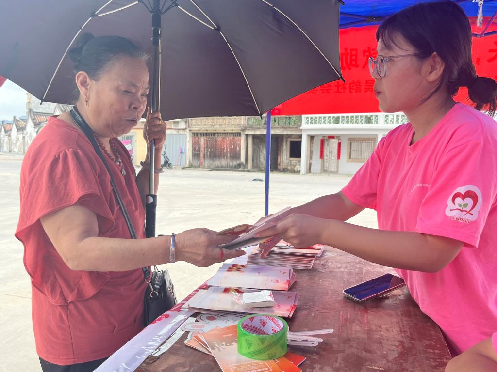 在征得当地政府同意后,队员们在下寨村村委门口设点摆摊,为前来询问资助政策的村民答疑解惑。本次活动采用线上线下“双线”结合的宣传模式,以多种途径为村民们普及国家资助政策。实践队队员在摊位前给路过的村民们分发资助政策宣传手册,加大宣传力度。同时,为真正实现政策入户、入心,实践队还采用走访入户的形式进行宣传。村民们纷纷表示之前对国家资助和助学贷款政策不太了解,在听完实践队的详细介绍后,有了较为清晰的认识并会充分考虑自身家庭经济情况而进行申请。