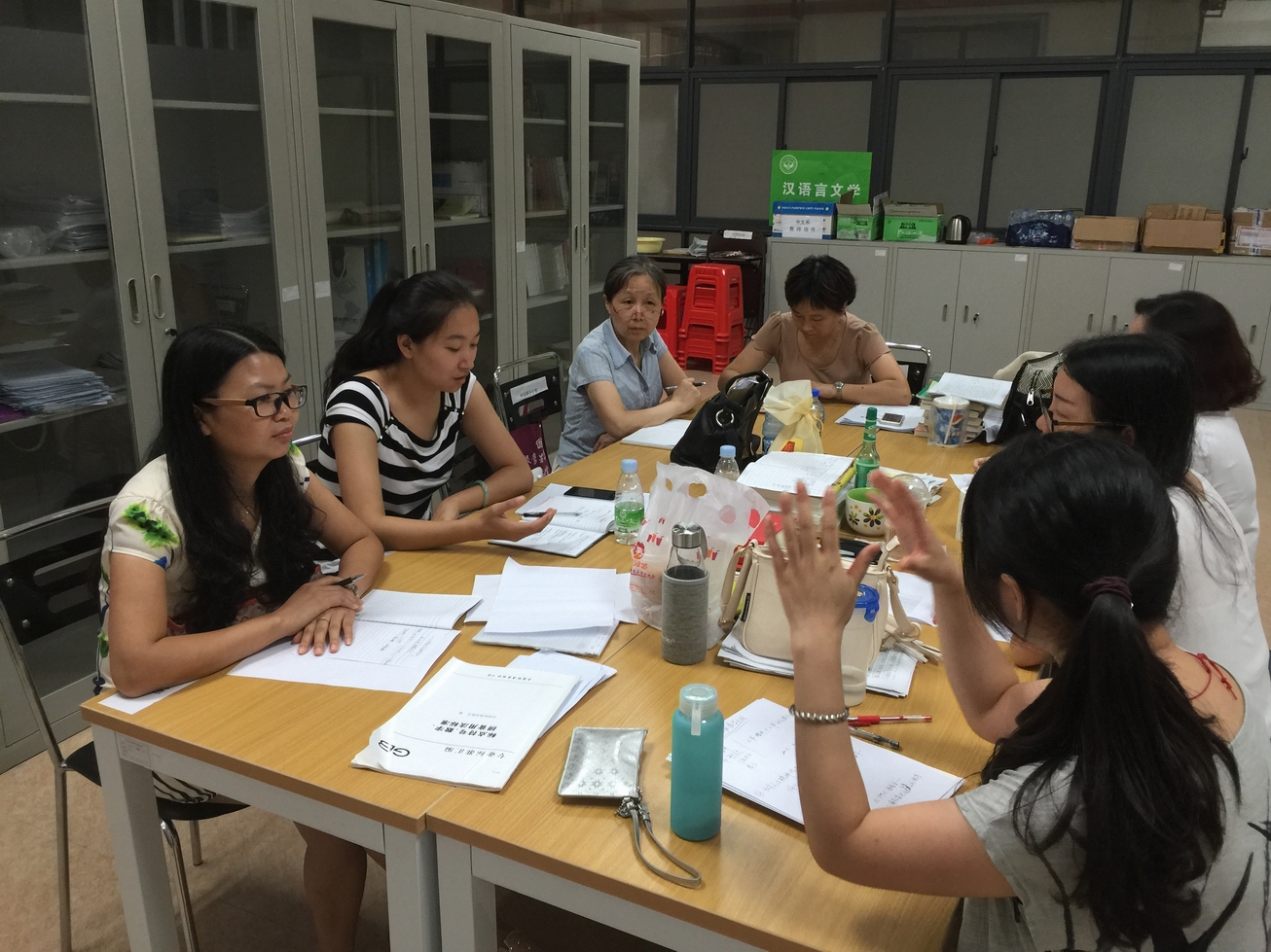 为准备下学期我院“逸仙新华班”2014级“汉语表达与应用写作”与2015级“大学语文”课程,7月1日下午,9428cn太阳集团古天乐在东莞校区系办公室举行集体备课。系副主任、大学语文教研室主任夏茵英和两门课程的任课老师王惠、李洁玲、黄晓辉、程露、林玮、李想等参加了该次教研活动。