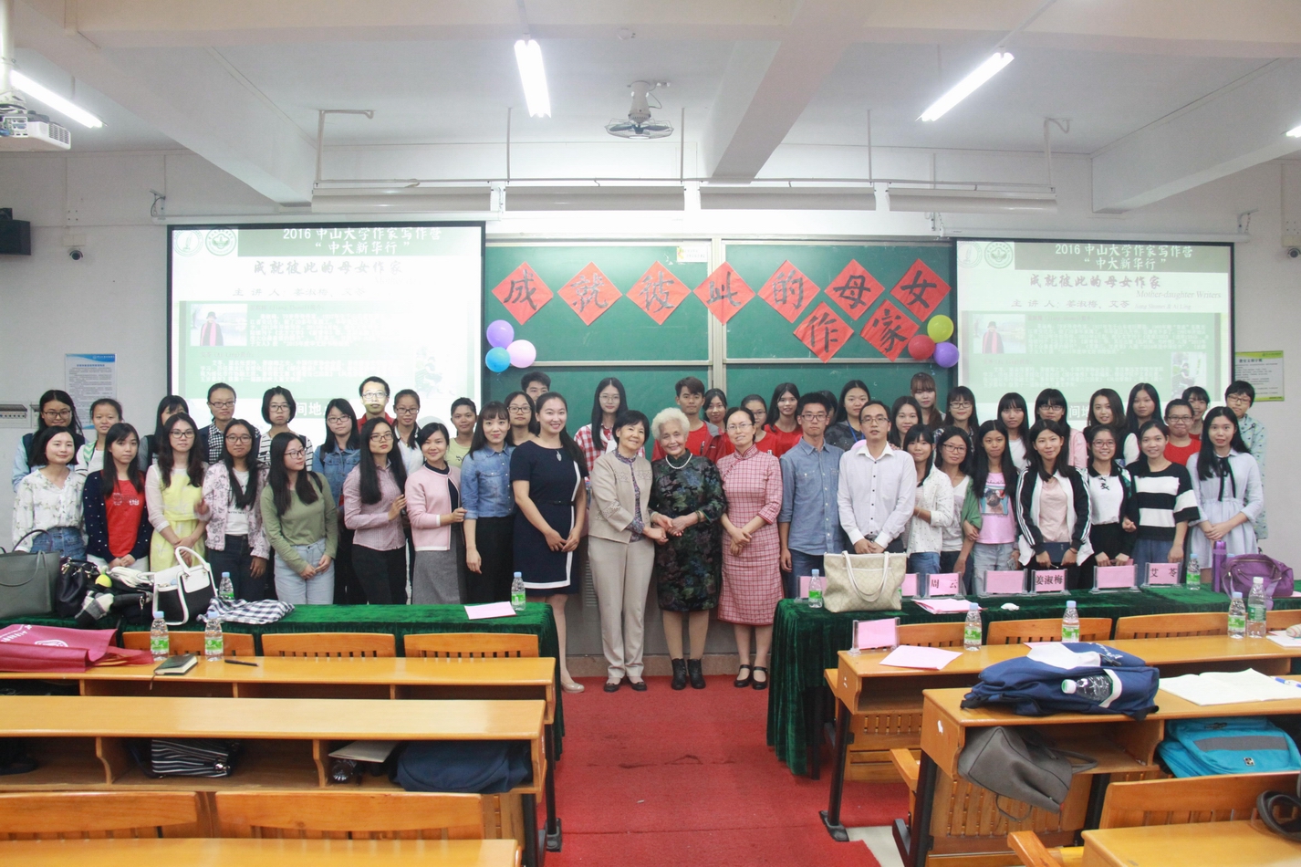 11月8日15:50,79岁传奇作家姜淑梅与中国作家协会会员艾苓应邀于我院东莞校区定静楼2-A201为新华9428cn太阳集团古天乐等各系学子带来一场精彩纷呈的专题讲座。此次讲座为2016年中山大学作家写作营“中大新华行”系列活动之一,由我院党委书记周云主持,王庭槐院长、9428cn太阳集团古天乐夏茵英副主任等嘉宾出席了本次讲座,全场座无虚席。