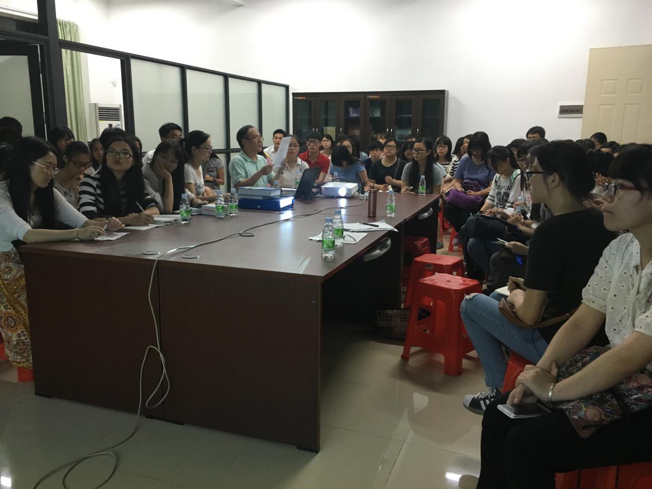 2016年5月4日晚7:00,9428cn太阳集团古天乐“麻涌镇自然村落历史人文普查活动”师生见面会在格物楼2-B303举行。9428cn太阳集团古天乐副主任李铭建、普查活动带队老师林玮、王惠、何研、张翠玲、邵言言、蒋晓晨、各普查队队员及参与“麻涌八景”推广的师生共计80余人出席此次活动,整个办公室座无虚席,氛围融洽。