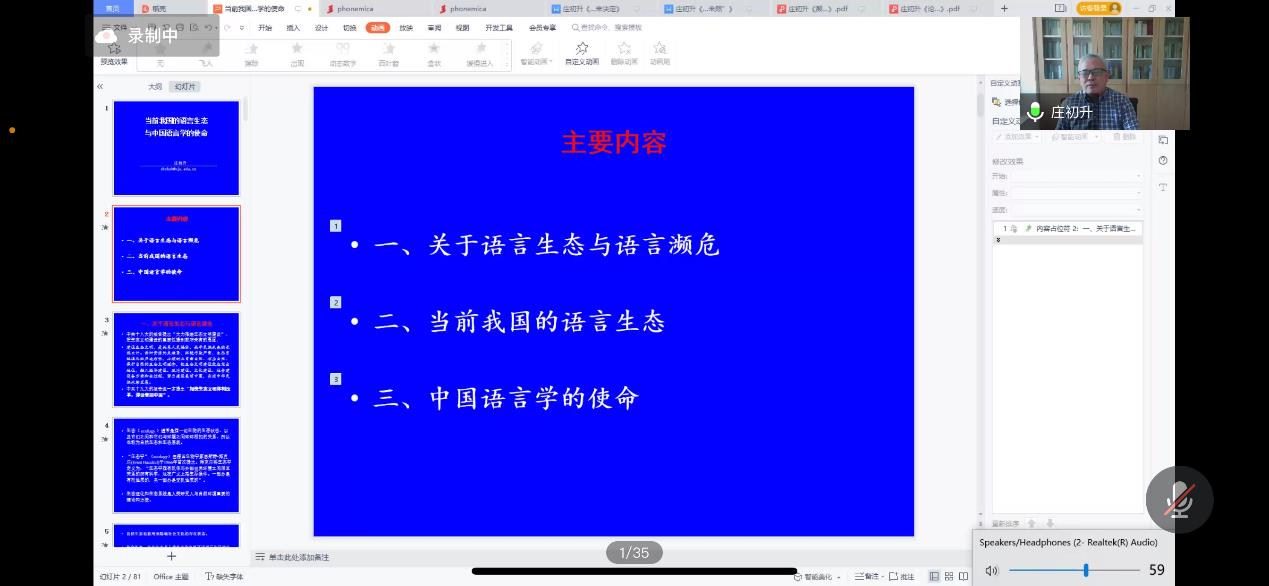 图2 庄初升教授讲解当前我国濒危语言