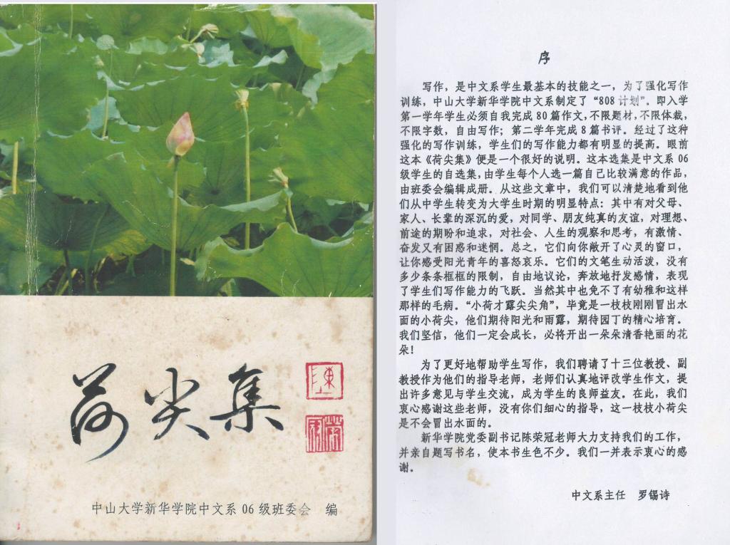 罗锡诗教授为2006级优秀作文集《荷尖集》作序