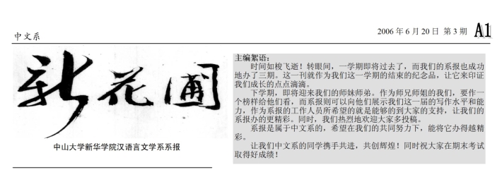 罗锡诗教授为系报《新花圃》题写的刊名