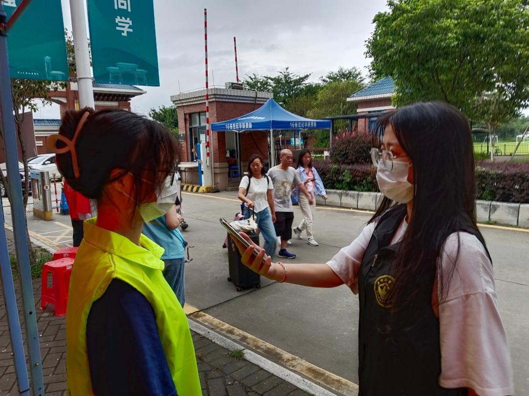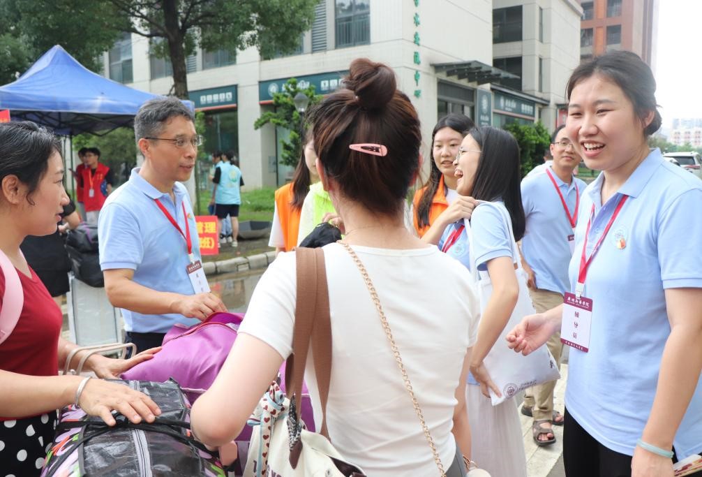 图4 迎新志愿者在校门口迎接新生