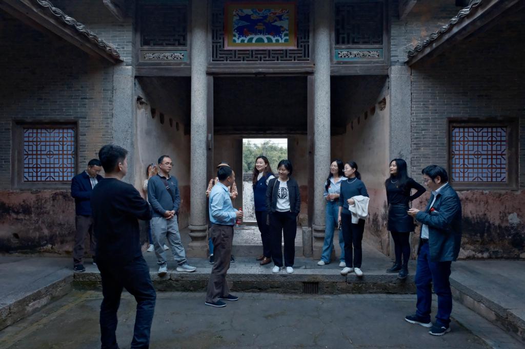 活动第三站为河源市南园古村。南园古村位于河源市东源县仙塘镇红光村,是广东现存规模最大、历史悠久、文化底蕴深厚、最具代表性的客家古村落之一。漫步在南园古村,仿佛穿越时空,回到了明清时期。每一座古建筑都有着精美的木雕、砖雕、石雕,展示了客家人的高超技艺和独特文化。为了进一步加深党员对乡村振兴战略的深入了解,吴良生博士详细讲解了南园古村的历史沿革和名人故事,党员们深切感受了到古村落深厚的人文底蕴。与此同时,党外知识分子齐皓教授以及陈小辉副教授也与党员同志一起探讨乡村振兴的创想及其意义。